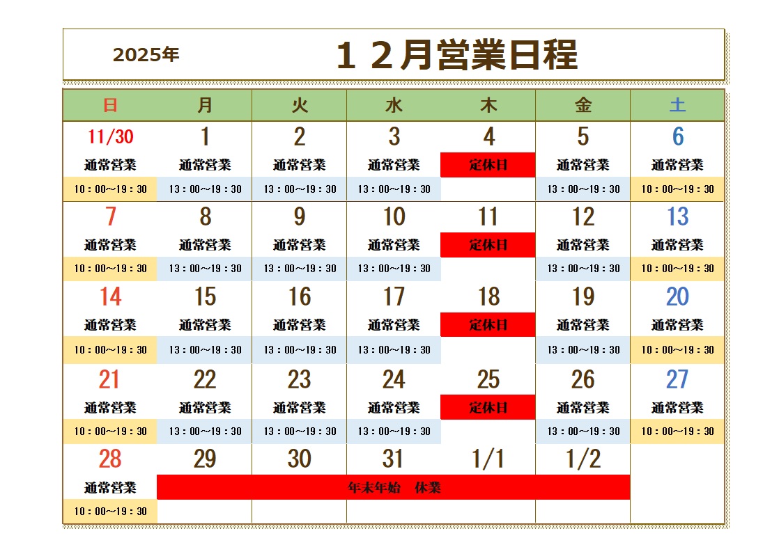 | 営業時間 | 13:00~19:30(土・日・祝:10:00~19:30) |